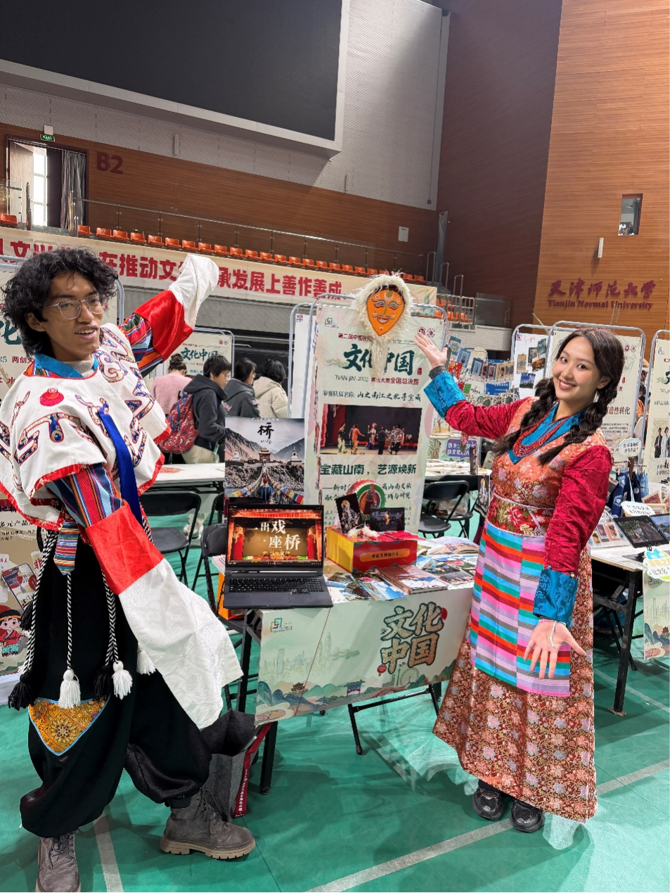 此次比赛中,团队合力反复修改宣讲文本,精心布置策展。展示现场,队员们身着藏袍,讲演融合的生动演绎赢得评审专家的一致好评。研究生部副主任温涛与负责研究生实践教学与管理的韩爽也来到比赛现场,为选手们加油鼓劲。