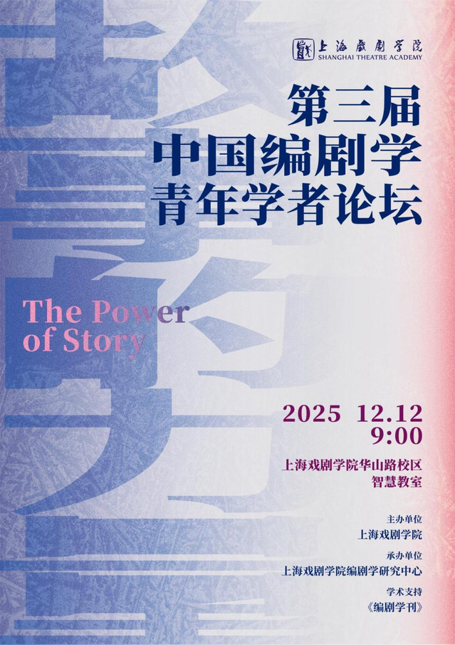 由上海戏剧学院主办,上海戏剧学院编剧学研究中心承办的第三届中国编剧学青年学者论坛,于近日在上戏华山路校区举行。本届论坛以“故事的力量”为核心议题,致力于搭建集学科建设、创作实践与理论创新于一体的学术交流平台,重点关注青年编剧人才的成长与发展,为兼具理论素养与实践能力的青年从业者提供优质展示与交流舞台。
