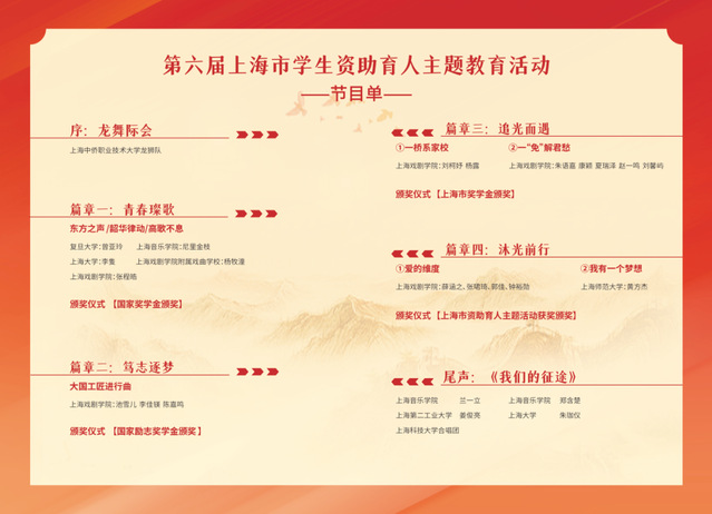 本次活动聚焦学生资助育人体系建设,推动资助工作高质量发展。上海戏剧学院表演系(含音乐剧中心)15名本科生、研究生作为主要演出团队积极参与,以专业演绎温情,以艺术传递力量,成为整场活动中一道亮丽的风景线。