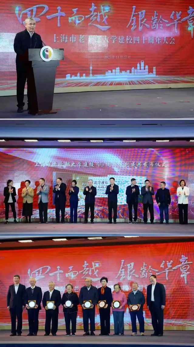 上海戏剧学院党委书记谢巍应邀出席了上海市老干部大学建校四十周年大会,并对上戏师生的辛勤付出表示感谢,高度肯定了团队展现的专业素养与服务意识。