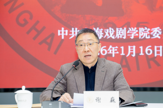 2026年1月16日,上海戏剧学院举行党委理论学习中心组(扩大)学习会。本次学习会以“学习贯彻党的二十届四中全会精神,深入践行习近平文化思想”为主题,特邀上海市学习贯彻党的二十届四中全会精神宣讲团成员、上海交通大学媒体与传播学院副院长徐剑教授作专题辅导报告。