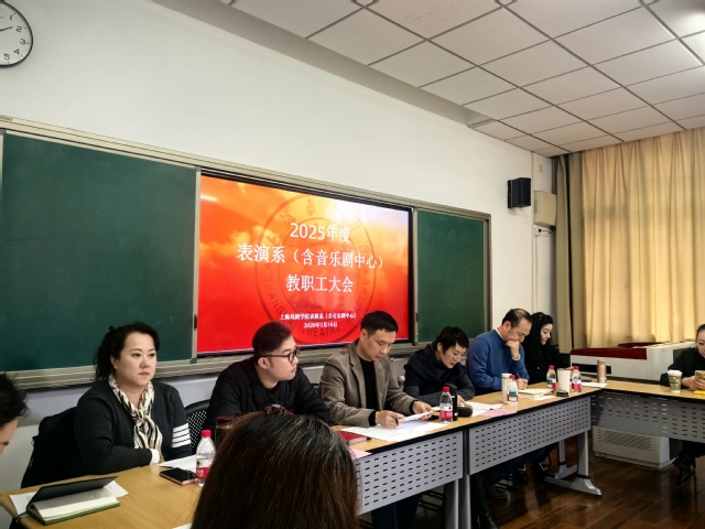 2026年1月16日下午,表演系(含音乐剧中心)教职工大会在红楼教室隆重举行。表演系(含音乐剧中心)党总支副书记、主任肖英,党总支书记朱锋,副主任王洋,音乐剧中心主任陈冉等出席大会。大会由党总支副书记夏逸石和系工会主席赵艳共同主持,全体教职工齐聚一堂,共话发展,共谋新局。