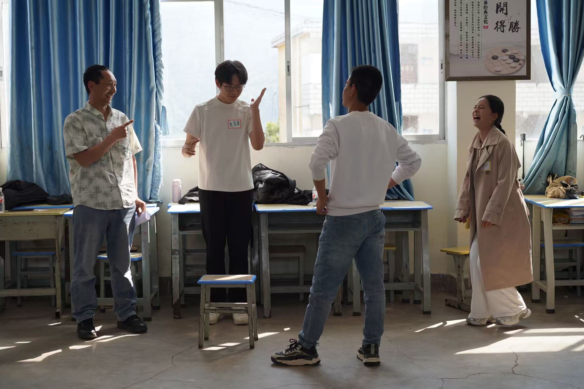 上海戏剧学院博士研究生、昆明城市学院教师王超带来《时间该去哪儿呢?》教育剧场,围绕“师生关系”这一核心议题展开沉浸式探索与共创。在戏剧情境中,与教师们一同重新审视课堂中的师生关系、沟通方式与情感连接,探讨如何在日常教学中建立更具支持性与成长力的师生互动模式。王超还带领当地教师开展古诗剧排演《江村诗情》,充分发挥当地教师能歌善舞的特色,在实践中传递戏剧教学方法。